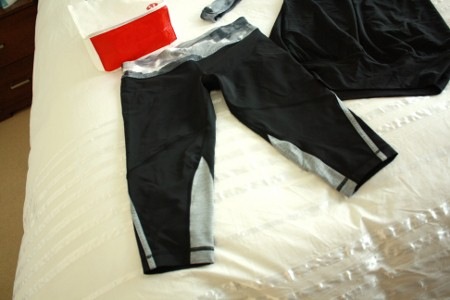J’ai choisi une paire de pantalon pour la course que je compte porter pour le spinning puisque je suis sur le banc pour encore plusieurs mois en ce qui concerne la course. Il me font comme un gant alors que les autres pantalons de Lululemon sont trop «taille haute» pour moi. Je suis petite de tronc donc la taille de leur pantalon montent plus haut que mon nombril ce qui est franchement inconfortable pendant un entraînement.
