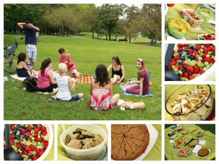Les plats partagés étaient tous succulents! Les assiettes débordaient de plusieurs types d’hummus, des crudités, une salade de coucous, des sandwichs au végélox, de la guacamole, des tortillas, une salade de fruits frais, des biscuits aux bleuets, des biscuits aux graines, fruits séchés et chocolat et un gâteau aux pépites de chocolat!