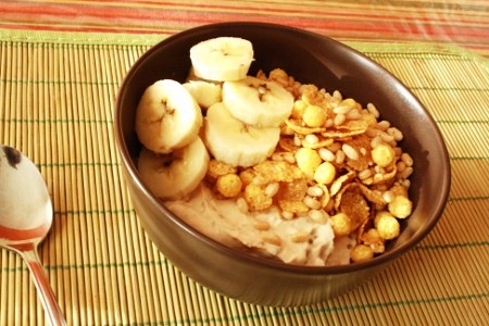 Avec les deux meilleurs accompagnements que la Terre ait porté (banane et céréales, comme dans mon enfance!) :