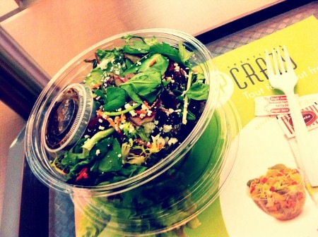 Je suis finalement tombée sur un Chop Crazy, un resto fast-food que je ne connaissais pas. Ils vous invitent à créer votre propre salade en choisissant parmi une panoplie d’ingrédients! Vous pouvez également sélectionner une de leurs créations maison.