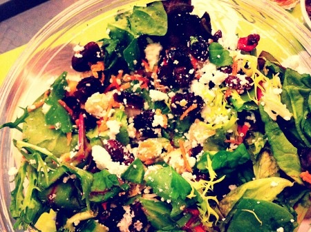 J’ai payé un extra pour le fromage et les canneberges séchées mais je trouve qu’un tel bol, pour 7,30$ taxes incluses, est une excellente option santé et économique!