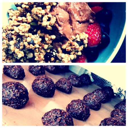 Mon défi d’alimentation vivante se passe à merveille jusqu’à maintenant (à quelques détails près mais on en reparlera à la fin de la semaine). Depuis dimanche soir, je suis la progression de la germinaison de mes pois chiches et tout semble bien se dérouler (pas d’odeur et un mini-bébé-riquiqui-deriendutout de petit germe) alors, ce matin, je me suis lancée dans la germinaison de mon sarrasin pour refaire du grawnola. La dernière fois, j’ai utilisé le sarrasin germé de Crudessence mais, cette fois, ce sera entièrement fait maison. Souhaitez moi bonne chance! Hier, j’ai aussi fait mon propre lait d’amandes et mangé ma première salade de chou kale maison (avant j’en faisais toujours des croustilles). On n’arrête pas le progrès! 😉
