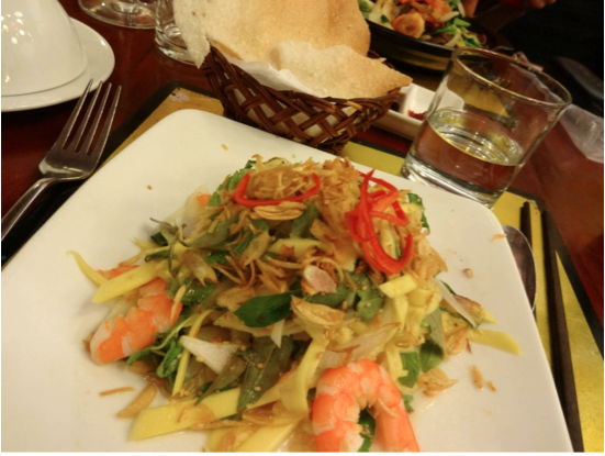 Après avoir consommé une quantité phénoménale de riz, de tofu mou et d’œufs frits, je porte une mention spéciale à mon coup de cœur culinaire du voyage, une salade de mangue verte aux crevettes, dénichée dans un resto haut de gamme d’Hoi An (lire : ce souper m’a coûté la modique somme de 5 $).
