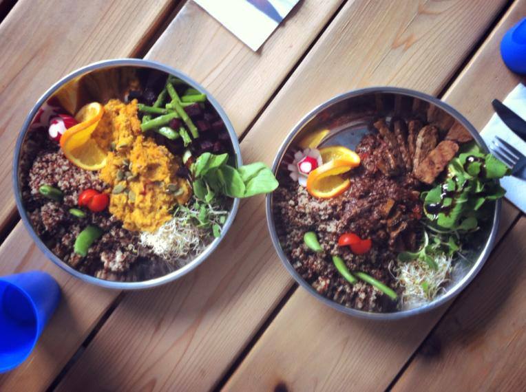 Je suis allée luncher au Sain Bol, sur Fabre, avec une amie tout récemment et quel plaisir ce fût pour mes papilles! Le menu est affiché au mur et change quotidiennement en fonction des aliments biologiques disponibles. L’entrée est comprise dans le prix de votre plat mais le dessert est en surplus.