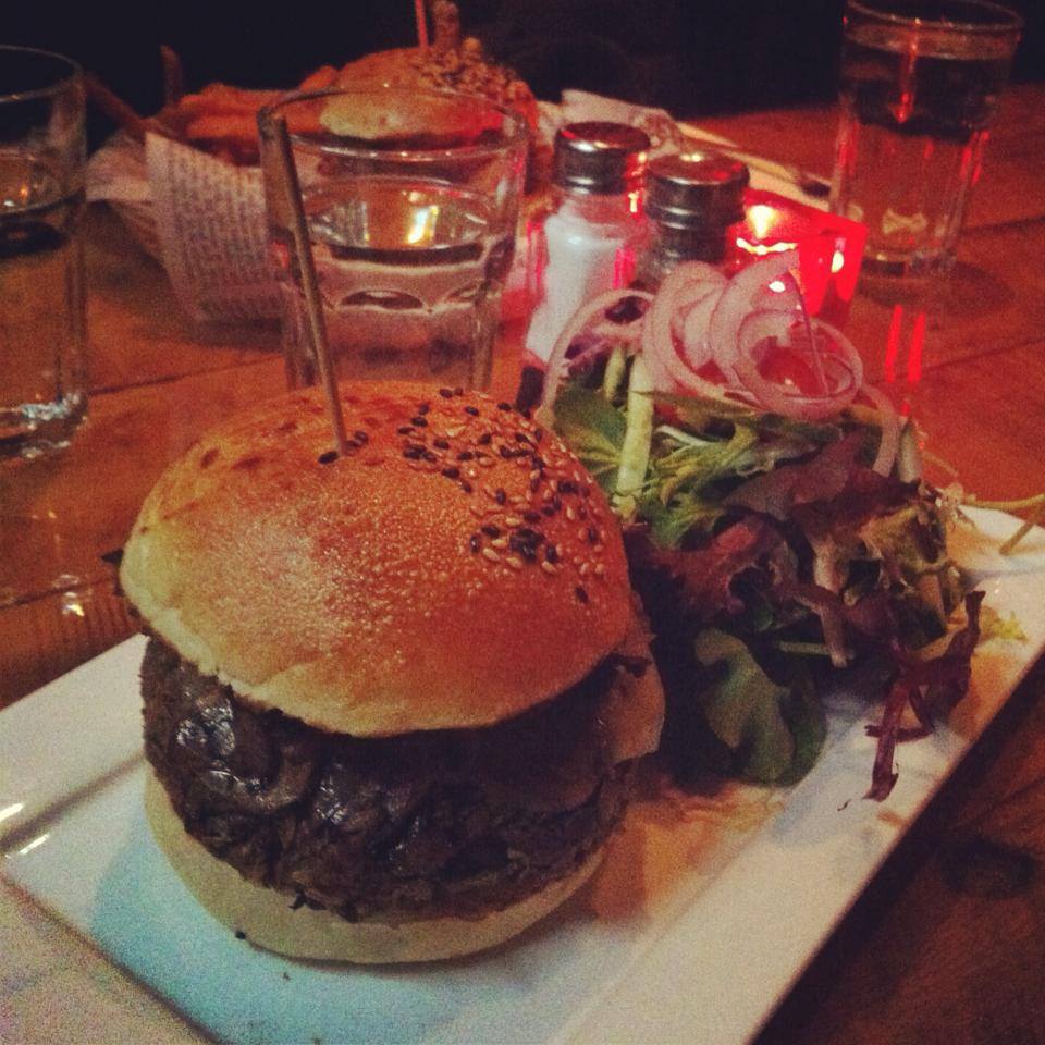 Ce n’est pas la première fois que je vous parle de La Boulette sur Beaubien et ce n’est sûrement pas la dernière non plus puisque j’habite maintenant à quelques coins de rue seulement! J’ai la ferme intention d’y amener tous mes visiteurs au moins une fois. Leur végé-burger est dé-li-cieux et, comme vous pouvez le voir sur la photo, énorme! Si vous le demandez dans fromage, il est végétalien. Leurs frites de patates douces accompagnées d’une de leurs mayos maison sont incroyables. Je prends toujours la salade en accompagnement mais je partage les frites avec ma soeur. Trop, trop bon! Comme c’est le seul item végétarien sur le menu (c’est un resto de tartares et burgers quand même), je n’irai pas à toutes les semaines mais, quand l’envie d’un bon végé-burger me prendra et que ça ne me tentera pas de le faire moi-même, c’est là que je courrai!