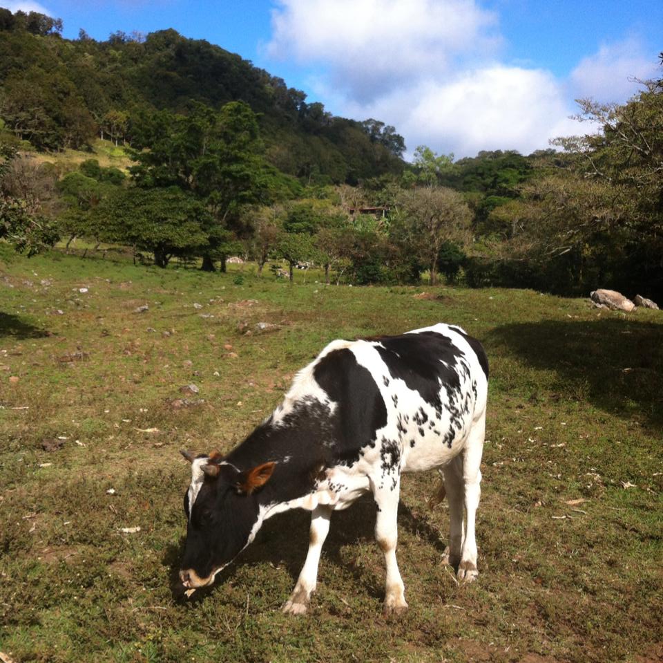 1er février : il y aurait tellement de choses à dire sur mon séjour à Miraflor! J’ai peur d’en oublier… Commençons donc par les évènements de la journée. Je me suis levée lorsque j’ai vu les premiers rayons de soleil se pointer entre les planches de la maison. Modesta et Mefalia étaient déjà au boulot depuis longtemps dans la cuisine! Je n’ai pas vraiment dormi de la nuit à cause du froid et des coqs (surtout les coqs. foutus coqs ahah! on m’y échappe pas ici…) mais j’étais prête à apprendre à faire des tortillas! Modesta m’avait promis de me montrer. Après avoir trait les vaches avec Marvin (j’ai essayé!! je suis nulle à faire rire et la vache devait avoir hâte que la touriste laisse son tour mais je suis fière d’avoir au moins essayé!), je suis retournée dans la cuisine pour assister les femmes de la maison. J’ai moulu un peu de farine de maïs (directement du grain) mais c’est Keith qui a fait le plus gros de la job. C’est vraiment un bon travail de bras avec leur petit moulin en fonte! Quand je pense à tous mes électros, robots, ustensiles spécialisés (comme un éplucheur ou un pile patate) j’ai juste le goût d’aller me cacher. On nous avait bien prévenu de ne pas amener de cadeau à la famille pour ne pas créer de jalousie dans la communauté mais j’ai le goût de leur envoyer un ensemble de couteaux ou un truc du genre. Le leur (il n’en ont qu’un) est si vieux qu’il coupe à peine des oignons. Heureusement que Molesta n’a pas à couper de carottes! Ils ne mangent que des trucs qu’ils cultivent eux-même : des oignons, des piments verts, du maïs, des fèves rouges, des patates et du lait qu’ils transforment en crème et en fromage. Ils achètent de la pâte de tomates, des pâtes (juste pour les touristes je pense), du riz et du sel. Encore une fois, la pensée de mon frigo qui déborde de légumes et sauces en tout genre me fait rougir. C’est dans ces moments-là qu’on réalise la chance que l’on a.