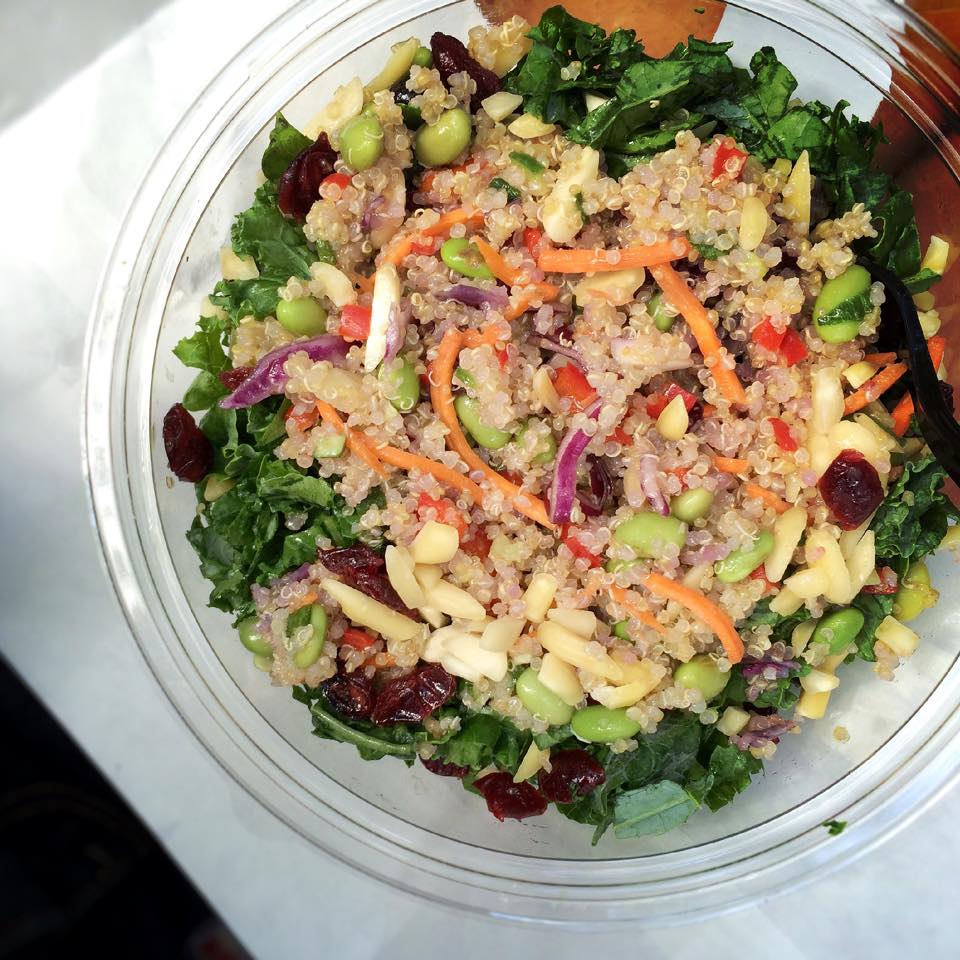J’ai opté pour la salade «Detox» de kale, quinoa, edamame, canneberges séchées et vinaigrette au sésame. C’était excellent! Antonin a choisi le Mac’n’Cheese (végétalien) et nous avons partagé un Old Fashion Chocolate Chip Cookie. Nous avons tous les deux beaucoup aimé notre plat. J’aimerais bien essayer le burger et les frites de patates douces la prochain fois par contre!