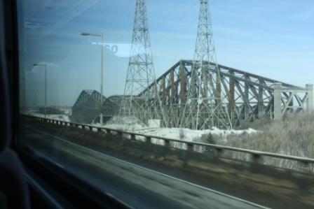 Finalement, j’ai dormi les 50 premières minutes du trajet. On n’avait même pas franchi Longueuil que j’étais dans les bras de Morphée… À mon réveil, j’ai grignoté une barre NRJ (nouveau nom des barres énergisantes…). Désolée pour la piètre qualité de la photo, ce n’est pas super stable un autobus… En passant, le truc brillant c’est de la pellicule plastique (idéalement, on l’enlève avant de manger la barre ;)).